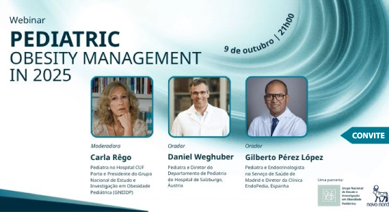 No dia 9 de outubro, às 21h00, realiza-se o webinar “Pediatric Obesity Management in 2025”, promovido pela Novo Nordisk e pelo Grupo Nacional de Estudo e Investigação em Obesidade Pediátrica (GNEIOP).